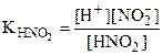Прибавление KNO2 к раствору HNO2 смещает равновесие диссоциации HNO2 влево за счет увеличения концентрации иона NO2-. В результате, в системе устанавливается равновесие при новых концентрациях Н+ и NO Тогда обозначим равновесную концентрацию ионов [Н+] в новых условиях через х: [H+] = х моль/л. Общая равновесная концентрация иона [NO [NO из HNO2 из KNO2 Концентрация ионов NO Концентрация ионов NO КNO2 - сильный электролит, α = 1, n тогда [NO Равновесная концентрация недиссоциированных молекул [HNO2] = (0,01 – х) моль/л.