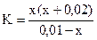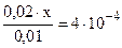 так как, х << 0,01 моль/л, то значением х, ввиду его малого значения, в выражениях (х+0,02) и (0,01- х) можно пренебречь, и данное выражение записать в виде: