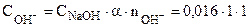10-3 – коэффициент перевода мл в л. Из уравнения реакции (7.5) следует, что число моль NaOH, вступившего в реакцию, равно числу моль HCl. Определяем вещество, оставшееся в избытке: 0,004 моль > 0,0025 моль. Следовательно, в избытке, который определяет рН среды остался NaOH. Тогда количество избыточного NaOH в растворе: