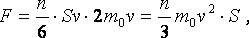 Найдём теперь количество молекул, ударившихся об участок поверхности площадью S (заштрихован на рис. 22в) за одну секунду. Очевидно, что за 1 с до стенки успеют долететь те молекулы, которые движутся в её сторону и находятся на расстоянии, не большем v. Поэтому ударятся об этот участок поверхности 1/6 всех молекул, находящихся в прямоугольном параллелепипеде, выделенном на рис. 22в, длина которого равна v, а площадь торцевых граней - S. Так как объём этого параллелепипеда составляет Sv, то общее число N молекул, ударившихся об участок поверхности стенки за 1 с будет равно: