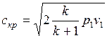 Величина критической скорости определяется физическими свойствами и начальными параметрами газа. Из уравнения адиабаты следует, что