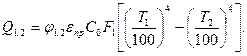 В случае теплообмена между произвольными телами каждое из них излучает на другое лишь часть энергии, излучаемой им по всем направлениям; остальная энергия рассеивается в пространстве или попадает на другие тела. В этом случае в расчетную формулу вводится поправочный коэффициент, называемый коэффициентом облученности тела j1,2 и учитывающий долю излучения первого тела, которая воспринимается вторым телом. Таким образом, теплообмен между двумя произвольно расположенными телами может быть рассчитан по формуле