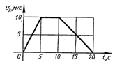 51. На тело массой 5кг действуют силы 9Н и 12Н, направленные соответственно на север и восток. Чему равно и куда направлено ускорение? (3м/с2; 37˚на северо-восток) 52. Мяч массой 0,5 кг после удара, длящегося 0,02 с, приобретает скорость 10 м/с. Найти среднюю силу. (250 Н) 53. На рисунке1 дан график зависимости проекции скорости от времени тела массой 2 кг. Найти проекцию силы (Fx), действующей на тело на каждом этапе движения. (4 Н; 0; -2 Н)