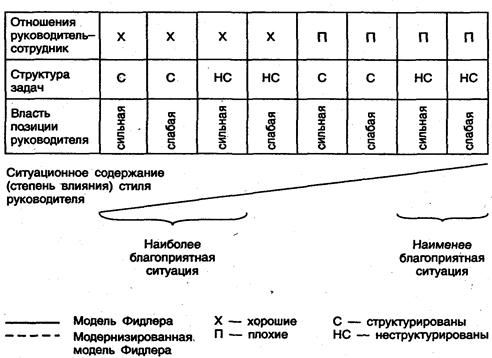 Рис. Модель Фидлера: взаимосвязь между стилем управления и ситуацией.