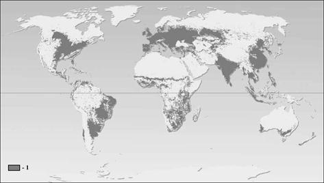 Мета: Дати поняття про земельні ресурси світу та розккрити роль аграрного виробництва у забезпеченні людства харчовими ресурсами. 1. Ґрунти їх утворення та властивості. Грунти відносяться до літосфери, яка є частиною біосфери, що займає верхні шари земної кори (від 2 до 8 кілометрів) з живими організмами і біогенними осадовими породами. Грунтовий шар Землі складає педосферу і займає проміжне положення між приземною частиною атмосфери (аеробіосферою), фітобіосферою та літобіосферою. Він відіграє роль глобального фіксатора та акумулятора сонячної енергії, яка в процесі фотосинтезу накопичується продуцентами. Ґрунтом вважається узагальнене найменування будь-якої гірської породи (осадової, магматичної, метаморфічної), яка залягає переважно в межах зони вивітрювання земної кори. Його розглядають з інженерно-геологічної (будівельної) точки зору при загальному підході до особливостей земної поверхні (твердий, пухкий, мерзлий і т. п.), або при різних формах ведення сільського господарства (відкритий, закритий) і власне ґрунтів. Грунт є складним утворення, у якому важливу роль відіграють біологічні компоненти. Мікробіолог М. Бейєрінк (Нідерданди) у 1888 р. відкрив клубенькову бактерію Bacterium radiciola, які фіксує атмосферний азот на корінні бобових рослин. А в 1901 р. він виявив вільно живучу аеробну бактерію азотобактер, яка виконую подібну функцію у грунті. У 1893 р. російський мікробіолог С.М. Виноградський виділив із грунту анаеробну бактерію клостридіум, яка засвоює молекулярний азот. Більша частина грунтів, придатних для виробництва харчів, у світі вже використовується (рис. 1).