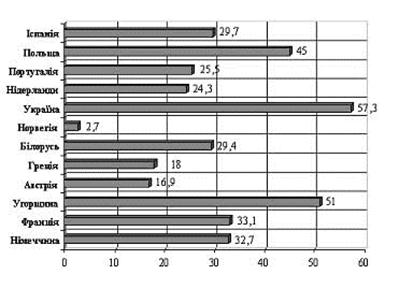 2. Деградація грунтів та їхні причини. Загалом для грунтів світу існує 4 основні загрози: А) Ерозія, механічна руйнація; Б) Аридизація, опустелювання; В) Токсифікація, зараження грунтів різними антропогенними речовинами. Часто токсифікації сприяє неправильне зрошення – багато води! Г) Втрата земель за рахунок міст, аеродромів и інших людських витворів. За сучасними оцінками, упродовж усієї історії свого існування людство зіпсувало 2 млрд. га родючих грунтів. Площа нині оброблюваних ланів та пасовищ становить близько 1,5 млрд. га. Територій, яких не торкнулася діяльність людини, у світі залишилося лише 39 % від усієї площі Землі. В Росії, площа якої 17,1 млн. км2, незаймані господарською діяльністю землі охоплюють територію 7-8 млн. км2 (41-47 % від загальної площі). У Канаді, відповідно - 9,98 млн. км2 і 6,4 млн. км2 (69 % від загальної площі), в Австралії - 6,2 млн. км2 і 2,5 млн. км2 (33 % від загальної площі), у Бразилії - 8,46 млн. км2 і 2,4 млн. км2 (28 % від загальної площі), у Китаї - 9,33 млн. км2 і 1,8 млн. км2 (20% від загальної площі) – рис. 2.
