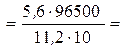 где m – масса вещества, выделившегося на электроде, г; М эк – молярная масса эквивалентов этого вещества, г/моль; Q – количество электричества, прошедшего через электролит, Кл; F – постоянная Фарадея, равная 96500 Кл/(моль∙экв). Q = I∙t, где I – сила тока, А; t – время, электролиза, с. Подставляя в формулу (1) вместо Q его значение, получаем Молярная масса эквивалентов никеля (молярная масса атомов никеля – 58,71 г/моль) равняется 58,71/2 = 29,36 г/моль. Подставляя это значение, а также силу тока и время электролиза (в секундах) в формулу (2), получаем искомую массу никеля: m = (29,36×5×600)/96500 = 0,91 г. Пример 13.2. Сколько времени нужно пропускать через раствор кислоты ток силой 10 А, чтобы получить 5,6 л водорода при нормальных условиях? Решение. Продукт электролиза представляет собой газообразное вещество, поэтому для решения воспользуемся уравнением