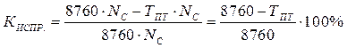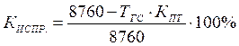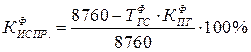Число исправных, готовых к эксплуатации ЛА, характеризуется показателем исправности КИСПР . (в процентах), который представляет собой отношение времени, в течение которого ЛА находятся в исправном состоянии, к общему фонду их рабочего времени за отчетный период (год) ТГФ в часах. Для списочного парка ЛА NC