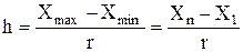 Ширину інтервалу h визначають за формулою