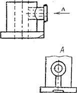 При проецировании предмет следует так располагать внутри куба относительно фронтальной плоскости проекций, чтобы главный вид его (вид спереди) давал наиболее полное представление о форме и размерах предмета. Виды, расположенные на основных плоскостях проекций, называются основными. Дополнительный вид- это изображение на дополнительной плоскости проекций какой - либо части детали. Такие изображения применяют для выявления формы наклонных элементов детали, которые проецируются искажённо на основные плоскости проекций. В качестве дополнительной плоскости проекций используется плоскость не параллельная ни одной из плоскостей проекций. Если дополнительный вид размещен в проекционной связи с изображенным элементом, то допускается не давать к нему поясняющей надписи. Во всех остальных случаях обозначается по типу «А» и стрелкой указывается направление взгляда. Например: