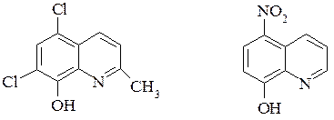Ряд похідних 8-оксихіноліну має протигрибкову, антибактеріальну та протипаразитарну дію. При кишкових інфекціях використовують хлорхінальдол, а при урогенітальних – нітроксолін: