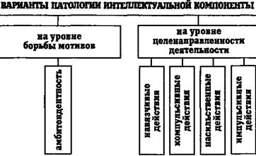 Глава! минирующего мотива деятельности. Критическое отношение к этому влечению сочетается с невозможностью борьбы с ним. Все поступки направлены на его реализацию. Характерны для некоторых психопатических синдромов, большого наркоманического и большого алкогольного нарко-манического синдромов (синдром зависимости). Импульсивные влечения — болезненные побуждения к деятельности, которые возникают остро, безмотивно, чем напоминают пароксизмальные. Отмечается неотступное стремление к реализации влечения с полным подчинением ему самосознания. На высоте патологического состояния часто наблюдается аффективное сужение сознания с последующей фрагментарностью воспоминаний. После реализации влечения возникают психическое истощение, общая релаксация в сочетании с успокоением и удовлетворением. Встречаются при кататонических синдромах, сумеречных состояниях сознания. Патология на уровне интеллектуальной компоненты волевого акта (рис. 20).