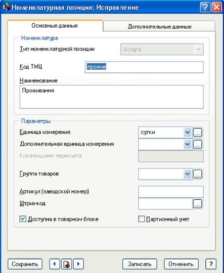 ■ Найменування - введіть повне найменування позиції - Проживання; ■ одиниця виміру - виберіть зі словника Одиниці виміру - доба. Якщо необхідної одиниці виміру немає у словнику, її необхідно додати /(див. рис. 1.3).