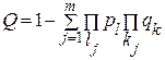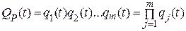 При параллельном соединении элементов и при условии, что для работы системы достаточно работы одного из включенных параллельно элементов, отказ системы является совместным событием, имеющим место при отказе всех параллельно включенных элементов. Если параллельно включены т элементов (см. рис. 2.2, б) и вероятность отказа каждого qj (t) = 1 —pj (t), то вероятность отказа этой системы