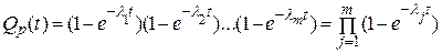 При резервном соединении т элементов, имеющих экспоненциальный закон распределения времени безотказной работы, вероятность отказа группы параллельно включенных элементов: