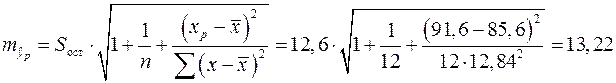 Анализ верхней и нижней границ доверительных интервалов приводит к выводу о том, что с вероятностью 4. Полученные оценки уравнения регрессии позволяют использовать его для прогноза. Если прогнозное значение прожиточного минимума составит: 5. Ошибка прогноза составит: