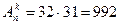 С помощью данного соотношения легко объяснить, почему принято считать 0!=1. Пример 3.5. Сколько двухбуквенных комбинаций, не содержащих повторений, можно составить из 32 букв русского алфавита? В данной задаче необходимо найти число размещений из 32 элементов по 2 по формуле (3.3):