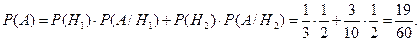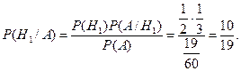 Пример 3.33. Имеются две одинаковых урны с шарами. В первой урне 5 белых и 10 черных шаров, во второй − 3 белых и 7 черных шаров. Выбирают наугад одну урну и вытаскивают из нее один шар. 1. Найти вероятность того, что этот шар белый. 2. Из наугад выбранной урны вытащили белый шар. Найти вероятность того, что шар вытащили из первой урны. Событие