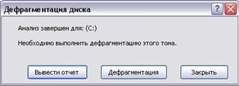 22 Если в сообщении написано "Необходимо выполнить дефрагментацию этого тома", нажимайте кнопку "Дефрагментация". Если увидите сообщение "Дефрагментация не требуется", ну что ж поздравляю, значит, Ваш компьютер в грамотных руках. Но, даже, если компьютер новый, сомневаюсь, что Вы увидите эту надпись. Скорее всего, процент дефрагментации будет значительным, а зачастую и вообще приближается к 100.
