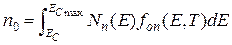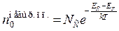 описывающее энергетическую плотность электронных уровней вблизи дна зоны проводимости, приходящихся на единицу объёма полупроводника. (Напомним, в (1.2.4) mdn* б) устремить в (1.2.1) верхний предел интегрирования к бесконечности (EС max® ∞). В итоге для расчёта равновесной концентрации электронов в зоне проводимости невырожденного полупроводника получим общую формулу вида
