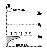 2). При ND < NA и выполнении неравенств ni << │ND – NA│ ≤ 1018 см-3 материал ведёт себя как невырожденный полупроводник р-типа с эффективной концентрацией акцепторов NАэф= NА – ND. Температурная зависимость положения уровня Ферми и концентрации свободных носителей соответствует графикам рис.1.3.2 и формулам (1.3.26) и (1.3.27) с точностью до замены концентрации NA на NАэф= NА – ND, т.е.