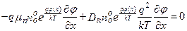 Рассмотрим неоднородно легированный невырожденный полупроводник n-типа в состоянии диффузионно-дрейфового равновесия. Подставим выражение (1.5.34) для равновесной концентрации электронов в формулу (1.5.33), согласно которой полный ток электронов в состоянии диффузионно-дрейфового равновесия повсюду обращается в ноль. Учтём связь Ех = - (∂φ/∂х) между проекцией вектора напряжённости электрического поля на ось ОХ и электростатическим потенциалом. Получим