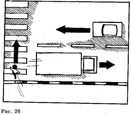 Белыми широкими линиями («Зебра») обозначаются нерегулируемые пешеходные переходы, а регулируемые (со светофорами) – параллельными пунктирными линиями. При переходе улицы по пешеходному переходу возможны различные варианты. Допустим, приближается машина, она достаточно далеко, чтобы вполне успеть перейти. Но не скрыта ли за ней другая, которая едет быстрее? Второй вариант – приближается машина, а вы спешите и хотите перейти. Но если переходить перед машиной, которая находится сравнительно близко, ваше внимание будет приковано к ней и легко не заметить встречную, упустить из наблюдения другую часть улицы. Поэтому лучше пропустить приближающуюся машину, даже если она не так уж близко. Пропустив машину, не следует выходить на проезжую часть сразу же после того, как она проедет. Во-первых, у машины может оказаться один или может даже два прицепа, которые можно было сразу и не заметить (особенно, когда машина поворачивает налево). А самое главное – пока проехавшая машина рядом, за ней можно не заметить встречную. Если в зоне перехода вами улицы стоит машина (пропускает пешеходов, испортилась), выходить из-за нее можно только предварительно приостановившись и выглянув, не скрывается ли за ней опасность. Когда поток машин остановился для того, чтобы пропустить пешеходов, нельзя отставать от основной группы. Водители могут не заметить отставшего пешехода и начнут движение. Так, что переход в установленном месте не так уж прост. При отсутствии в зоне видимости перехода или перекрестка разрешается переходить дорогу под прямым углом от тротуара к тротуару на участках улицы без разделительной полосы, ограждений и газонов там, где она хорошо просматривается в обе стороны. На нерегулируемых пешеходных переходах пешеходы могут выходить на проезжую часть после того, как оценят расстояние до приближающегося транспорта, и убедятся в безопасности перехода. Иногда дети, увидев приближающуюся машину, рассчитывают, что она своевременно затормозит. Скорее всего это так, но водитель, может не заметить ребенка, так как он наблюдает за другими пешеходами, машинами или просматривает путь поворота или разворота. То, что фары машины «смотрят» на ребенка, еще не говорит о том, что на него смотрят глаза водителя. Это надо иметь в виду! Если улица узкая с двусторонним движением, то, стоя на тротуаре, следует осмотреть ее во всех направлениях и, убедившись в безопасности, перейти. Вопросы для обсуждения на практическом занятии. (На улице или на макете дороги с прилегающей территорией рассмотреть все возможные ситуации – «Ловушки», подстерегающие детей при переходе как по пешеходному переходу, так и без него.) В каких местах пешеходы обязаны переходить улицу? Как определить, где находится пешеходный переход? Как убедиться в безопасности при переходе улицы? Вы собрались переходить через дорогу, видите приближается машина, но она пока еще далеко и едет медленно. Вы явно успеваете. Можно ли переходить?