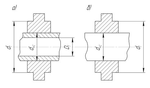 Рис. 2.1. Эскиз соединения деталей с натягом a) вал с отверстием; б) вал без отверстия (D1 =0)