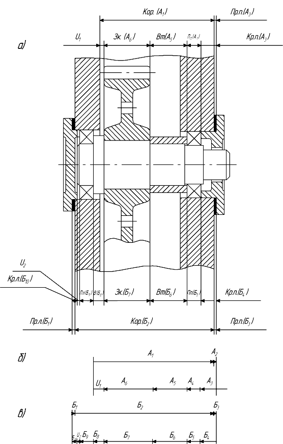 Рис. 6.1 Эскиз заданного узла редуктора: а – эскиз узла; б – схема размерной цепи узла