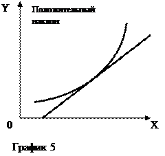 Определение наклона кривых Графическое изображение простейших (линейных) зависимостей На графиках 1-4 показаны простейшие зависимости, выраженные прямой линией. В действительности зависимости носят более сложный характер и изображаются кривыми (графика 5-6). Наклон функций может меняться, переходя из положительного в отрицательный, и наоборот (графики 7-8).