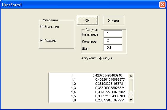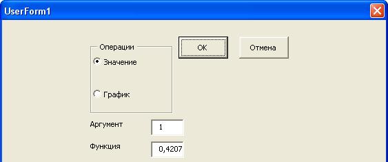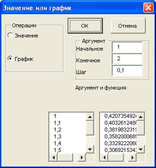 Операция, проводимая над функцией должна устанавливаться выбором переключателя из группы Операция (рисунок 12.1).