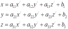 Це співвідношення виражає старі координати через нові і, по суті, є системою трьох лінійних рівнянь відносно невідомих оскільки вектори