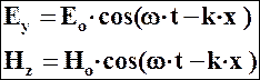 Рівняння плоскої електромагнітної хвилі, Ey – напруженість електричного поля Hz – напруженість магнітного поля