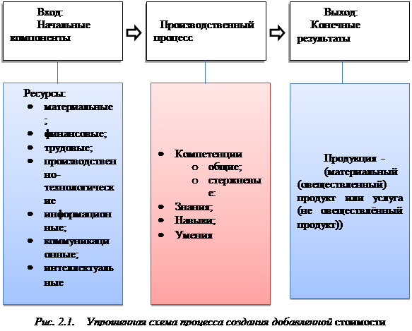 Цепочка ценностей – это ряд последовательных действий организации по преобразованию ресурсов в конечный продукт или услугу. Важность анализа цепочки ценности определяется тем, что наряду со стержневыми компетенциями она является основным источником конкурентного преимущества. Анализ ценностной цепочки дает возможность оценить влияние различных видов деятельности организации на увеличение ценности продукции и услуг по сравнению с затратами на используемые ресурсы, оценить насколько эффективно и продуктивно размещены (конфигурированы) и скоординированы виды деятельность в организации. Критерием эффективности является оценка стоимости, добавленной в процессе преобразования ресурсов в конечную продукцию, которая поступает на рынок в виде товаров или услуг. Стоимость измеряется ценой, которую покупатель готов заплатить за товар. Способы увеличения ценности продукта: · Изменить мнение мнения о продукте таким образом, чтобы потребитель был готов заплатить более высокую цену за него, а не за подобный продукт, выпускаемый другими организациями; · сокращение издержки по сравнению с конкурентами. Организация - это открытая система, которая преобразует начальные компоненты (ресурсы, сырье и т.д.) в конечный продукт (товары и услуги)(рис. 2.1).