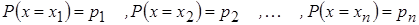 Сумма вероятностей всех возможных значений случайной величины равна единице. Эта суммарная вероятность каким-то образом распределена между отдельными значениями. Случайная величина будет полностью описана с вероятностной точки зрения, если зададим ее распределение, то есть укажем, какой вероятностью обладает каждое из событий. Законом распределения случайной величины называется всякое соотношение, устанавливающее связь между возможными значениями и соответствующими вероятностями их появления. Простейшей формой задания закона распределения является таблица, в которой перечисляются возможные значения случайной величины и соответствующие им вероятности.