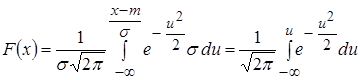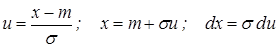 Вычисление значения функции распределения требует в каждом случае численного интегрирования. Чтобы избежать этого, используется нормированное нормальное распределение с m =0 и s=1. Для этого вводится новая переменная u: