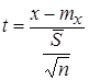 Плотность вероятности распределения параметра t зависит от величины t и числа степеней свободы n, n= n -1.