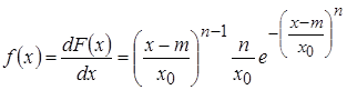 Кривые Значения плотности и функции распределения Стьюдента выражаются через гамма-функции, для вычисления которых необходимо численное интегрирование. Поэтому обычно пользуются статистическими таблицами, в которых в зависимости от числа степеней свободы n для нескольких значений уровня значимости a приводятся значения параметра t кр(1), для которого вероятность появления значений t < t кр(1) равна доверительной вероятности b =1-a (односторонний критерий) или t кр(2), для которого вероятность выполнения условия – t кр(2) < t < t кр(2) равна b (двухсторонний критерий. Применительно к описанию усталости металлов Вейбуллом предложено распределение, функция распределения вероятности которого имеет вид: