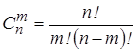 Здесь Cnm – число сочетаний m элементов из n,