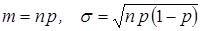 Случайная величина с таким распределением называется биноминальной случайной величиной, а ее распределение – биноминальным. Параметрами распределения являются вероятность появления событий в одном опыте р и количество опытов n. Математическое ожидание этого распределения