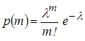 Такое распределение имеет, например, число отказавших однотипных невосстанавливаемых изделий в течение фиксированного интервала работы. При При малых вероятностях p < 0,1 и большом количестве опытов, n > 10 биноминальное распределение сводится к распределению Пуассона, которое также называется законом редких событий. Вероятность того, что случайная положительная целая величина X примет значение m, равна