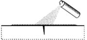 Рис.11.3. Нанесение пенетранта Время выдержки пенетранта должно гарантировать его проникновение в полость несплошности. Время выдержки зависит от марки применяемого пенетранта и указано в его документации, но не должно быть менее 5 минут. При этом необходимо исключить высыхание пенетранта за время выдержки, т.е. освежать (наносить) его несколько раз. 4) Удаляют пенетрант с контролируемой поверхности с помощью безворсового материала (ткани), смоченного в очистителе, либо распылением очистителя с последующей протиркой. Время удаления должно быть минимальным, так как возможно одновременное удаление пенетранта из полостей несплошностей или его засыхание. От качества удаления пенетранта зависит эффективность контроля. Остатки пенетранта на поверхности могут привести к ложной оценке (перебраковке), а вымывание его из несплошностей к их пропуску (недобраковке). 5) Наносят проявитель проявитель на контролируемую поверхность из аэрозольного баллона, распылителем или мягкой кистью тонким слоем, преимущественно за один проход. Подтеки и наплывы не допускаются. Для проведения качественного осмотра результатов контроля следует обеспечить необходимую освещенность контролируемого участка. При цветном капиллярном контроле используются лампы накаливания или люминесцентные лампы, освещенность должна быть не ниже 500 лк. При люминесцентном контроле должны использоваться сертифицированные ультрафиолетовые облучатели, а само изделие необходимо затемнить. Проявитель, обладая сорбционными свойствами, вытягивает пенетрант, насыщаясь им. На светлом (белом) слое проявителя появляется яркий (розовый или люминесцентный) след. Осмотр контролируемого участка рекомендуется проводить в два приема: - предварительный, через 3-5 минут, отмечая начальное появление индикаторных следов и наблюдая: объемный или протяженный характер имеет несплошность; - окончательный (заключительный), через 15-20 минут после высыхания проявителя. Выявленная несплошность дает на поверхности проявителя индикаторный след в виде контрастного пятна. Чем больше пенетранта попало в полость несплошности, тем дольше (до полного высыхания) длится проявление, тем заметнее (крупнее и расплывчатей) индикаторный след. Размеры индикаторного следа отражают размер несплошности, но не соответствуют ей по величине и форме. На рис. 11.4. приведены примеры индикаторных следов от трещин и объемных несплошностей.