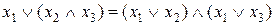 Столбцы, соответствующие левой и правой частям первого равенства, содержат одинаковые значения, что и доказывает справедливость равенства . Двойственное тождество выражает дистрибутивность дизъюнкции относительно конъюнкции.