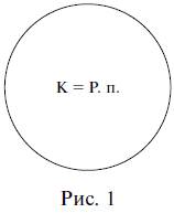 Понятия бывают совместимыми и несовместимыми. Совместимыми называются понятия, объемы которых имеют общие элементы, каким-либо образом соприкасаются. Например, понятия спортсмен и американец совместимые, так как их объемы имеют общие элементы или объекты: есть такие спортсмены, которые являются американцами, и наоборот, есть такие американцы, которые являются спортсменами. Несовместимыми называются понятия, объемы которых не имеют общих элементов, никаким образом не соприкасаются. Например, понятия треугольник и квадрат являются несовместимыми, потому что их объемы не имеют общих элементов: ни один треугольник не может быть квадратом, и наоборот. Совместимые понятия могут находиться в отношениях равнозначности, пересечения и подчинения. Понятия находятся в отношении равнозначности в том случае, если их объемы полностью совпадают. Например, равнозначными будут понятия квадрат и равносторонний прямоугольник, ведь любой квадрат – это равносторонний прямоугольник, а любой равносторонний прямоугольник – это квадрат. В логике отношения между понятиями принято изображать с помощью круговых схем Эйлера[2]. Объемы понятий на них изображаются отдельными кругами. Взаимное расположение кругов на схеме показывает то или иное отношение между понятиями: они могут полностью совпадать, или пересекаться, или не соприкасаться, или один круг может располагаться внутри другого. Так, отношение равнозначности между понятиями квадрат (К) и равносторонний прямоугольник (Р. п.) изображается схемой, на которой два круга, обозначающие два равных объема, полностью совпадают (рис. 1).