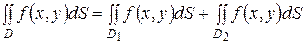 где Свойство 2 (об аддитивности двойного интеграла по области интегрирования)