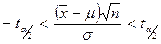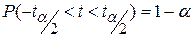 Условие, в силу которого значение t с вероятностью (1-a) попадет в соответствующий интервал запишется как: