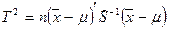 где å – ковариационная матрица, в случае если ковариационная матрица å не известна, используется ее несмещенная оценка Хоттелинг ввел Т2 - статистику, которая является многомерным аналогом квадрата величины t- распределения Стьюдента. Статистика Т2 представляет собой просто геометрическое место точек эллипсоида доверительной области. Она выражается через объем выборки, выборочные средние и выборочную ковариационную матрицу: