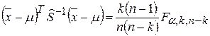 образуют в k -мерном пространстве внутренность и границу эллипсоида с центром в точке Величину Т2 можно связать с распределением F соотношением: