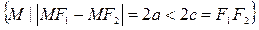 Гиперболой называется множество точек плоскости, для каждой из которых абсолютное значение разности расстояний до двух данных точек плоскости F1, F2, называемых фокусами, есть величина постоянная, равная 2а, меньшая, чем расстояние между фокусами 2с. Если точка Гипербола =