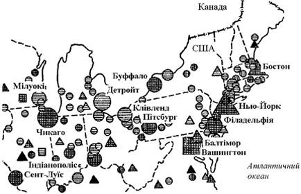 Рис. 2.14. США. Мегаполіс Бостон – Нью-Йорк – Філадельфія – Балтімор – Вашингтон (за В. Харитоновим)